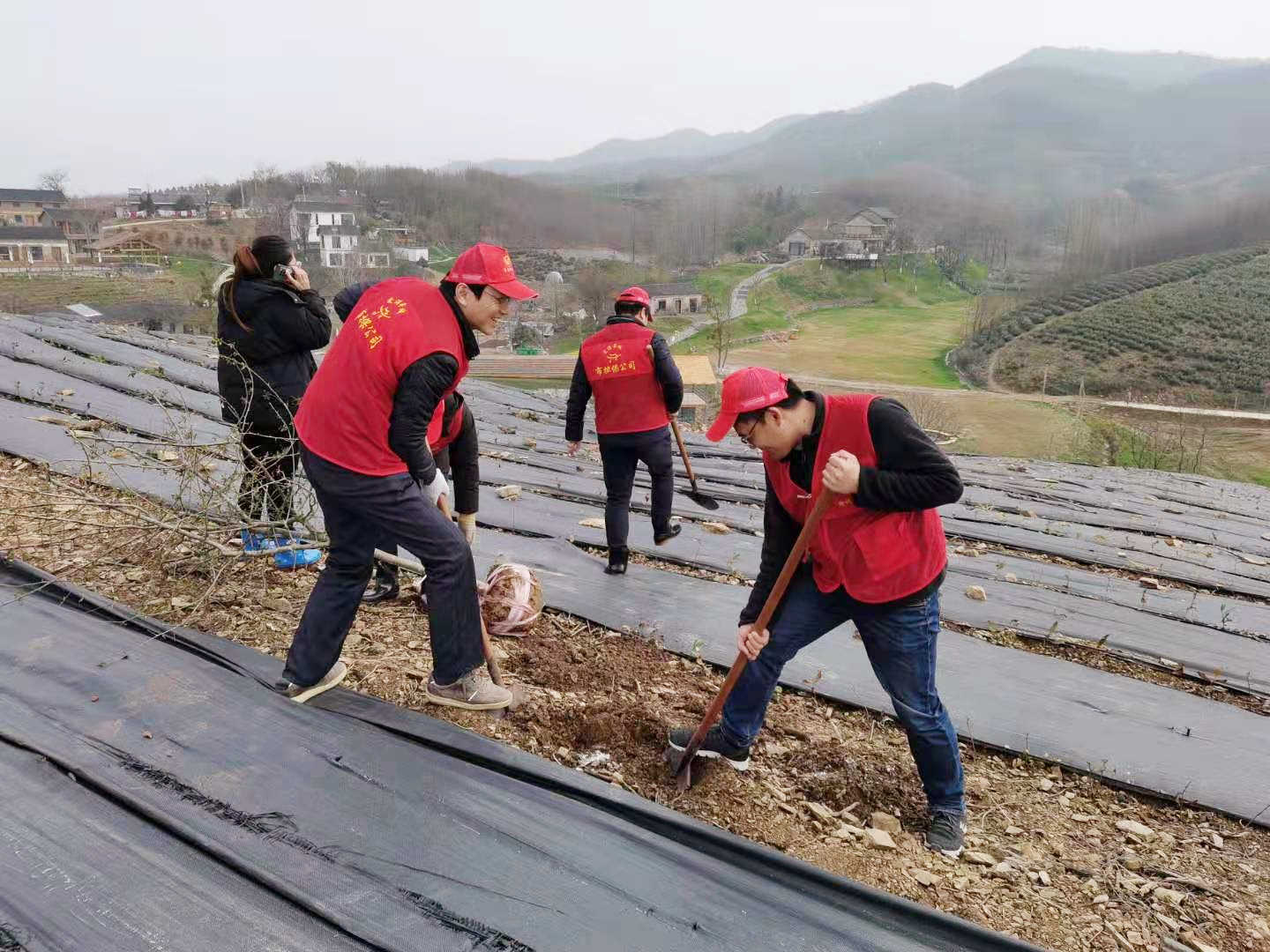3月12日早晨,志愿者們帶上工具,身著紅馬甲開赴皖東茶鄉(xiāng)施集鄉(xiāng)井楠村。一到現場,志愿者們立即行動起來,在技術人員的指導下,根據地上已做好的標記,有的挖洞開溝,有的搬運花木,有的扶苗培土,各項工作按程序有條不紊開展起來。由于前一天剛下過雨,山上還很泥濘,志愿者們不怕臟不怕累,全身心投入到綠化美化的志愿服務中,那身亮麗的紅馬甲在茶園里顯得格外靚眼。經過一天的辛勤勞動,一棵棵紅梅、綠梅、臘梅,一棵棵樸樹、玉蘭,被間隔種植在新開發(fā)的茶山上,來年的茶山一定更加美麗。